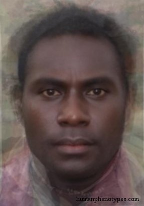 Physical Traits:Black, sometimes dark dark brown skin - the darkest in Oceania. Unlike in African Blacks, even palms are dark. Tight-curly / kinky hair that is black-brown, rarely blonde or red (especially in children). Medium-height, mesoskelic, ecto- to mesomorph. Mesocephalic, mildly hypsicranic. Straight or mildly convex, platyrrhine nose. Relatively soft facial features, supraorbital arches mild.