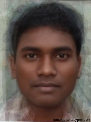 Physical Traits:Black-brown skin, often darker than Veddoids except for Malids. Curly or wavy hair, short, mesoskelic, ectomorph, sometimes endomorph. Dolicho- mesocephalic, ortho- hypsicranic, small-headed. Meso- platyrrhine, triangular nose. The face is high and angular with relatively full lips. Similar to Karnatids and Gondids, from the latter it is distinguished by higher, longer faces, stronger chins, higher foreheads, and absence of prognathism.