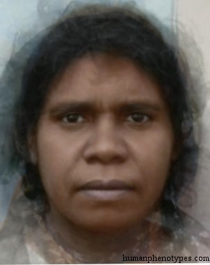 Physical Traits:Medium to dark reddish-brown skin with wavy to tight-curly brown or black hair. Medium height, brachyskelic, mesomorph. Dolichocephalic, sometimes mesocephalic, chamae- orthocranic and large-headed. Nose platyrrhine, but relatively high and long. Face even more massive and robust than in other Australids. Supraorbital arches strong, deep-set eyes, forehead and chin receding, prognathy common, body hair strong.