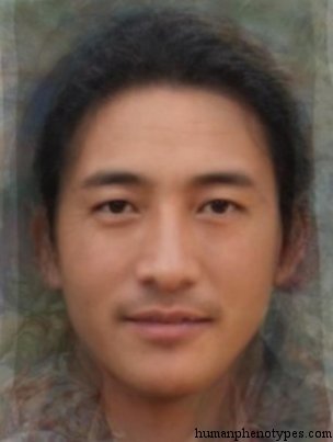 Physical Traits:Light olive-brown skin with straight, sometimes wavy hair. Medium height, macro- mesoskelic, ectomorph to endomorph. Mesocephalic, mildly hypsicranic. Relatively prominent, long, mildly leptorrhine and slightly convex nose. Face is relatively broad, but narrower than in Sinids and Kham Tibetids. Eyelids narrow, epicanthic folds occur in some individuals, cheekbones pronounced, forehead narrow.