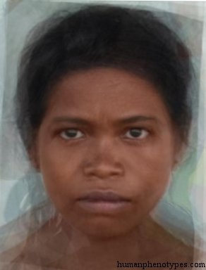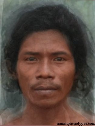 |  Description:The easternmost Veddid type, usually shorter-skulled. The oldest living type of the Sunda Islands. More widespread in historic times and probably pushed back by South Mongolids. Diluted today. In its purest form in the Toala of Celebes, where it occurs in Tokea and Loinang as well. May also be found in Sumatra (Kubu, Lubu, Batak), Borneo (Ulu Ajar), Lombok, Philippines (Aeta, Mangyan), even South-East Papua and Madagascar (Sihanaka). Physical Traits:Medium to dark brown skin, usually wavy, sometimes curly hair. Short, ectomorph, meso- macroskelic and infantile. Meso- brachycephalic, mildly hypsicranic with a round occiput and a platyrrhine, often depressed and concave nose. The face is broad, low and angular. Males often show supraciliary arches, women are more infantile. Prognathy is common, chin receding. Literature:First identified by Sarasin (1905, 1907) and named Toalid by Eickstedt (1937,  1952). Kleiweg de Zwaan (1925) found Veddoids in Loiang, Heberer and Lehmann (1950) in Lombok, Heberer (1950) in Flores , Conklin (1949) in Mindoro, Biasutti (1967) from Sumatra to Borneo, Palawan, Celebes, and Lombok. |  |   |   |