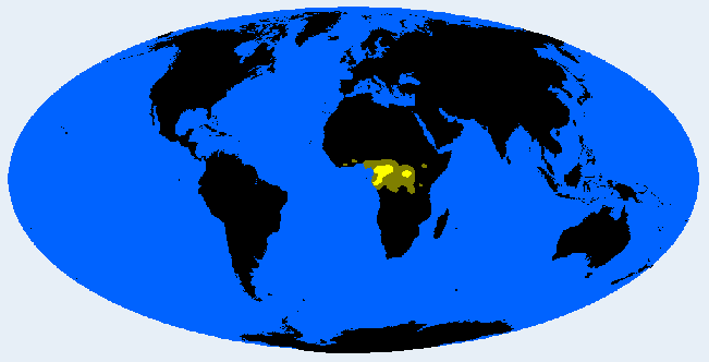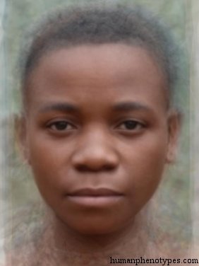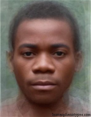 |  Description:Type of the African Pygmies, living in Central Africa. Shows the strongest adaption to tropical rainforest conditions of all humans. Bambutids belong to the shortest humans, the males hardly surpass 140 cm. Very short-legged, athletic. Noses are the widest in the world, often wider than the mouth, features overall infantile. Hairiness stronger than in savannah groups, lips thinner, skin fairer, face wide, the peppercorn hair ranges from reddish-blonde to black. The type diverged from others some 60 000 years ago and developed through hunter gatherer lifestyle in the forests. East Bambutids show the most pronounced features, their stature is shorter, face wider, nasal root lower, and prognathy weaker than in West Bambutids. The similar Twa-Cwa group shows stronger Congolid influence. Most Bambutid tribes today suffer from war, discrimination, and loss of culture. Names:Bambutid (Eickstedt, 1934, 1952; Vogel, 1974;  Lundman, 1967, 1988; Knussmann, 1996), Negrillo (Cole, 1965; Debets, 1974), Négrille (Vallois, 1968) , Pigmidi (Biasutti, 1967), Central African (Cheboksarov, 1951), (African) Negrito (Hooton, 1946; Coon et al., 1950), Pygméenne (Montandon, 1933), Homo akkalis (Haeckel, 1898). |  |   |   |