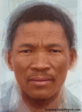 |  Description:Special group, typical for the old agricultural population of Southern Africa with many unique features, adapted to dry climate. Very ancient and distinct. Stature is rather short, the bodies are lean, women show steatopygia. The skin is yellowish light brown, often wrinkled, peppercorn hair common, nose very wide, eye folds are frequent, the skull is long and low with little prognathy. Compared to the similar Sanids, Khoids are taller, less infantile, faces longer, chins more pointed, heads longer, the convex upper lip is absent. Was more widespread across Southern Africa until Bantu and European colonisation almost wiped it out. Besides the Khoid (proper), distant relationships to East African types may exist (Sandawe, Hadza) as well as to North African types (Paleo Saharid). The almost extinct Strandlooper type seems to be an ancestral form. Names:Khoid (Eickstedt, 1952;  Lundman, 1967; Knussmann, 1996), Khoinid (Eickstedt, 1934), Hottentot (Deniker, 1900; Hooton, 1946; Cole, 1965; Vallois, 1968; Debets, 1974; Vogel, 1974) , Ottentotta  (Biasutti, 1967), Homo hottentotus (Bory, 1827; Fischer, 1829). |  |   |   |