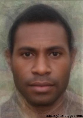 |  Description:The dominant type of New Guinea and Melanesian islands. The name derives from melas (Greek) = black, and nesos = island. Probably developed through various migrations from South-East Asia during the Paleolithic and Neolithic. Medium brown to black skin, tight-curly hair, robust features, often with supraorbital arches, wide, relatively high noses and full lips, the height is variable, the limbs are long. Although features sometimes appear Sub-Saharan African, no close relationship exists, and they result from convergent evolution. Besides the Insular Melanesid proper, a more gracile, long-nosed Neo Melanesid variety is found among Papuans. Mountain Melanesids show very robust features, Tapirids are among the shortest people of the world. In the Western Solomon Islands, a very dark Bukaid variety exists. A very ancient, Australoid variety is the Paleo Melanesid. Names:Melanesid (Eickstedt, 1934; Vogel, 1974; Knussmann, 1996), Melanesian (Coon et al., 1950; Cheboksarov, 1951; Cole, 1965; Debets, 1974; Alexeev, 1979), Mélanésienne (Vallois, 1968), Papua-Melanesiana (Biasutti, 1967), Melanesian-Papuan (Hooton, 1946),  Papouasienne (Montandon, 1933), Homo Melanicus (Bory, 1827). |  |   |   |