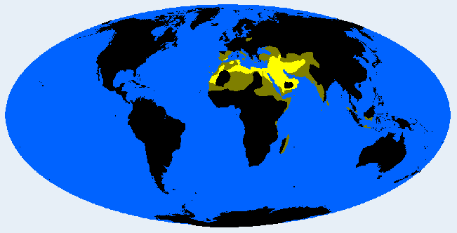 Widespread Mediterranoid group, common in the desert and steppe regions from North Africa to South-West Asia. Similar to Mediterranid with long heads and dark hair, but darker skinned, with almond-shaped eyes, fuller lips, longer faces, long, mildly aquiline noses, and even leaner bodies. Probably developed after the ice age from early Mediterranid groups as an adaption to dry climate. The low-skulled Arabids are often regarded as the most typical variety. In Persia, a taller, high-skulled Iranid variety is found, in North Africa a similar Libyid. The Targids and Egyptids are in transition to Mediterranid, the Assyroids in transition to Armenoid. Tradesmen, conquerors, and migrants spread the type over many new regions in recent centuries, including North and East Africa, India, and Europe.