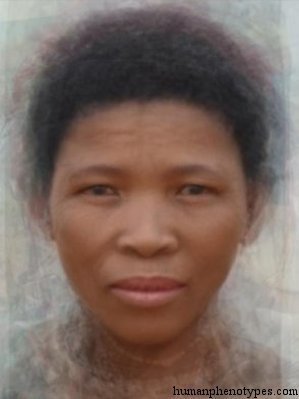 |  Description:Special type of the hunter-gatherer populations of Southern Africa (Bushmen) with many unique features. Shows the most pronounced adaption to dry climate among all humans. Very ancient and distinct. Stature is short, bodies are lean, some women show steatopygia. The skin is yellow-reddish brown, often wrinkled, peppercorn hair is common, nose very wide, eye folds are frequent, skull medium-long to long and low, hardly prognathous. Compared to the similar Khoids, Sanids are shorter, more infantile, and shorter-faced, skulls slightly shorter, the convex upper lip is more common. Historically widespread across Southern Africa, but has continuously been pushed back by the Bantu and European expansions, and survives only in a few relict groups today. In the Kalahari Desert, the Kalaharid variety is characterised by thinner noses and bodies, in the Southern Karoo steppe the Karroid is more thickset with extremely wide noses. The almost extinct Strandlooper type seems to be an ancestral form. Names:Sanid (Eickstedt, 1934, 1952;  Lundman, 1967, 1988; Knussmann, 1996), Bushman (Deniker, 1900; Coon et al. 1950; Cole, 1965; Vallois, 1968; Debets, 1974; Vogel, 1974) , Boscimana (Biasutti, 1967), Houzouanas ou Boschismane (Desmoulins, 1826). |  |   |   |